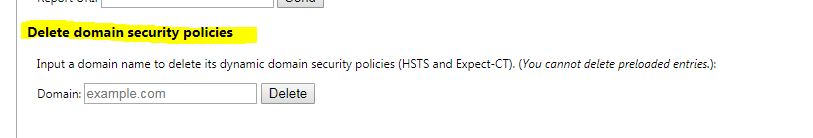 - Теперь прокрутите страницу вниз и введите то же имя домена ( inceptive.ru ) в поле Delete domain security policies и нажмите кнопку "Delete"