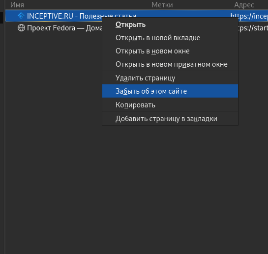 - Теперь щелкните этот сайт правой кнопкой мыши и выберите « Забыть об этом сайте» . Имейте в виду, что это приведет к удалению всех данных сайта, присутствующих в Firefox.