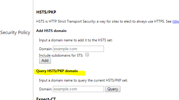В поле Query HSTS/PKP введите имя домена ( inceptive.ru ), для которого вы хотите удалить настройки HSTS. Это должно вернуть данные сайта.