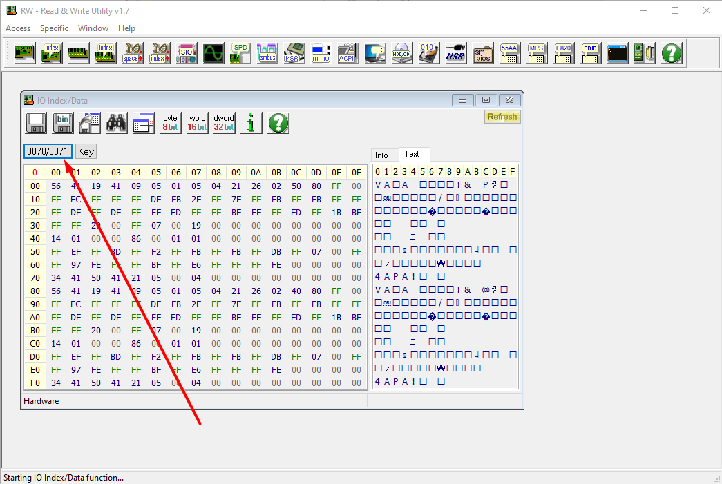 - В открывшемся окне нажмите кнопку 00xx/00xx в верхнем левом углу (начальное значение xx может отличаться от показанного на рисунке).