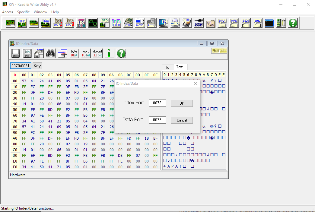 - В открывшемся окне измените значение параметра Index Port на 72, Data Port на 73 и нажмите кнопку OK.