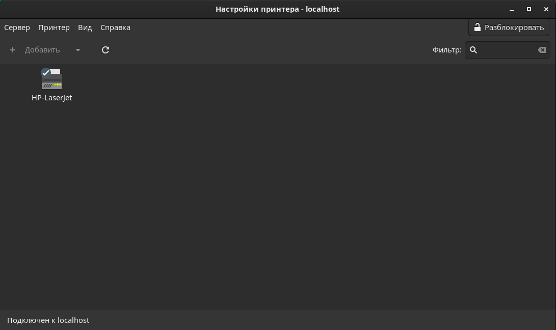 sudo pacman -Syy cups-filters2) Дальше чтобы упростить настройку принтеров существуют программы с понятным интерфейсом для настройки установите если нет «system-config-printer» она на русском языке и вполне понятна для новичков кто не имел опыта работы с cups (Скриншот программы где уже настроен принтер)