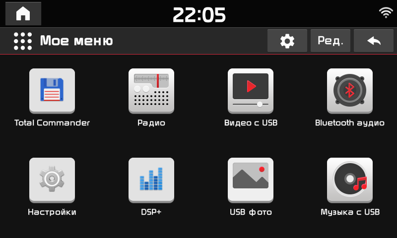 - Доступ к приложениям реализован с помощью "мое меню" на главном экране.