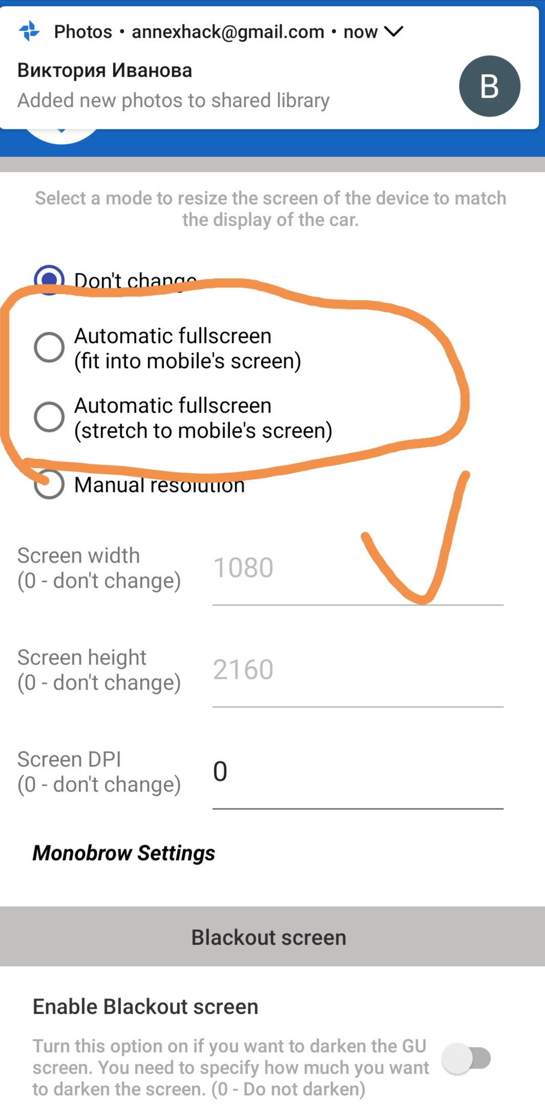 - Изменение размера экрана телефона в соответствии с размером экрана AA (root)